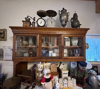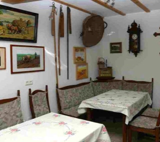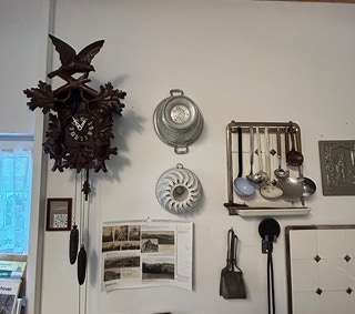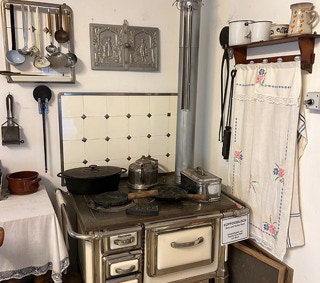 Wohnküche mit Ofen, Spinnrad, Dröppelminna und vielem mehr.