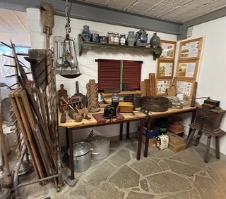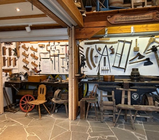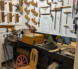 Gezeigt werden Maschinen und Werkzeuge einer Stellmacher Werkstatt aus Herkenrath, sowie von uns gesammelte Exponaten. Mit der Ausstellung kann die Entwicklung der Werkzeuge und Bäuerlichen Hilfsmittel in den letzten 150 Jahren dargestellt werden. In der jetzigen Form ist sie fester Bestandteil unserer Führungen.
