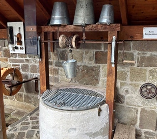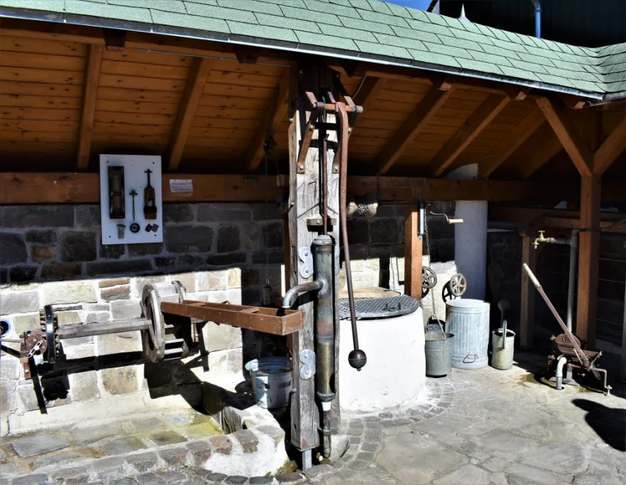 Heute findet man neben dem Wasserrad verschiedene Handpumpen in funktionsfähigem Zustand, einen hydraulischen Widder, eine wassergetriebene, intermittierend arbeitende Pumpe. Mit ihr kann Wasser auf ein höheres Niveau gehoben werden.