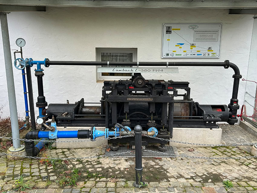 Im Herbst 2015 wurde eine Lambachpumpe in Betrieb genommen. Auch diese Pumpe wird mit Wasser angetrieben. Gottlieb Lambach ersann in den 1880er Jahren diese Maschine, mit der Wasser in höher gelegene Ortschaften gefördert werden konnte. Er nannte sie „Wassersäulenmaschine“.